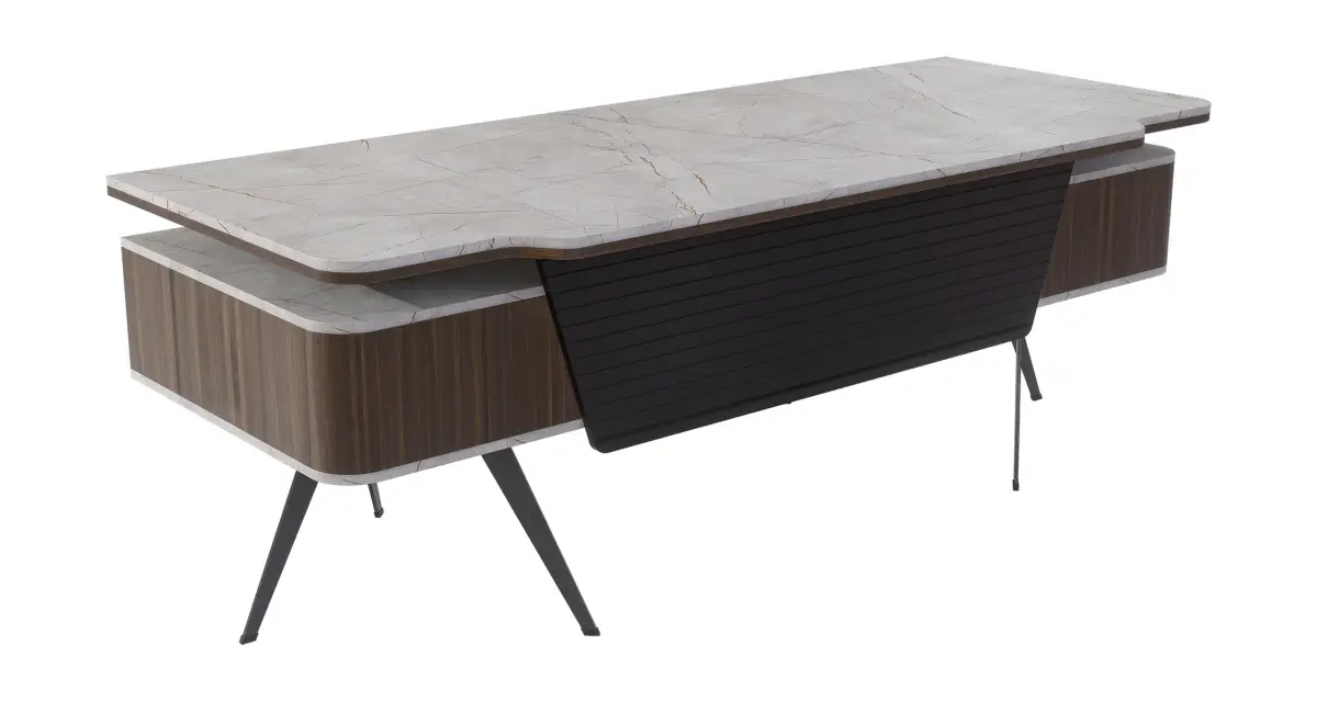 | ZEUS Masa 18+18 mm Myl Üst Tabla Sağ-Sol Komodin Bas Çek ve Gizli Çekmece Lake Boyalı Ön Perde Özel Tasarım Lazer Kesim Ayaklar | L: 220 W: 90 H: 75 |